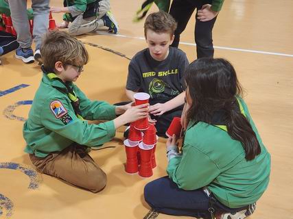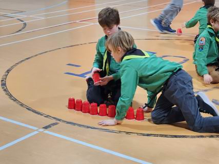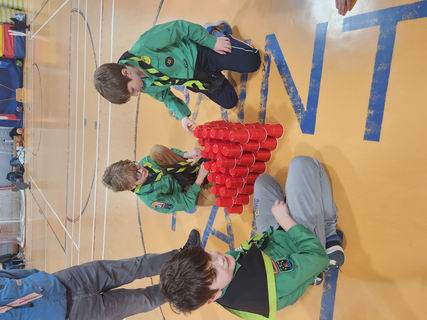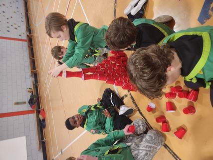 Chaque tanière (équipe) devait construire la plus hauter structure avec des verres.