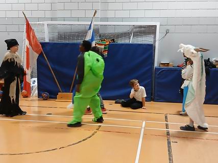 Les louveteaux s'étaient déguisés pour la réunion de l'Halloween. Après avoir chacun décrit son costume, ils ont fait un jeu, ensuite chaque tanière a fait un sketch et un ban puis ce fut suivi du goûter.